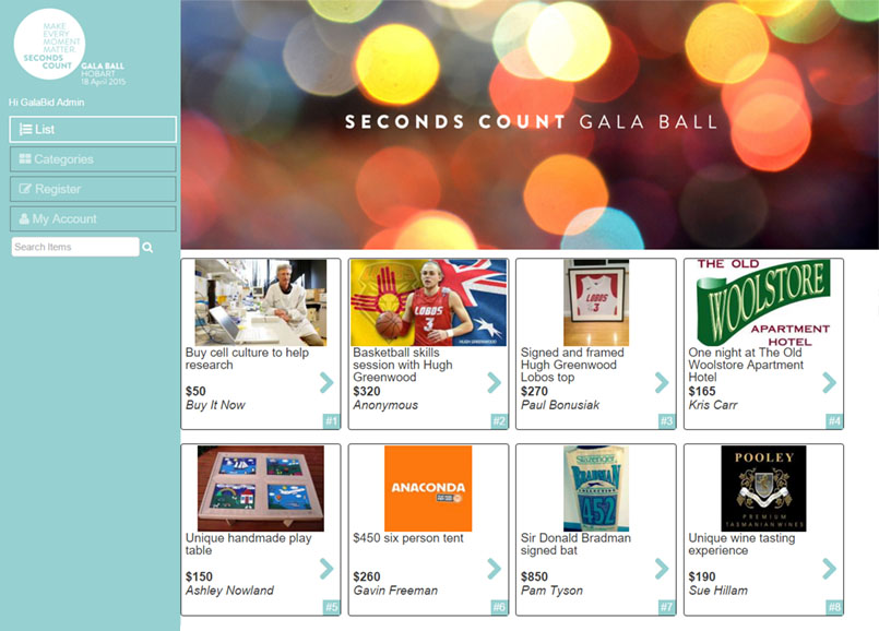 April saw the event team at Seconds Count run a 500 person gala in Hobart with great success. Their varied auction catalogue offered prizes and price points for everyone from singing lessons to teddy bears - there really was something for everyone! This is really a key point to remember when running your own auction - variety of prizes and price points are key to engaging more bidders.