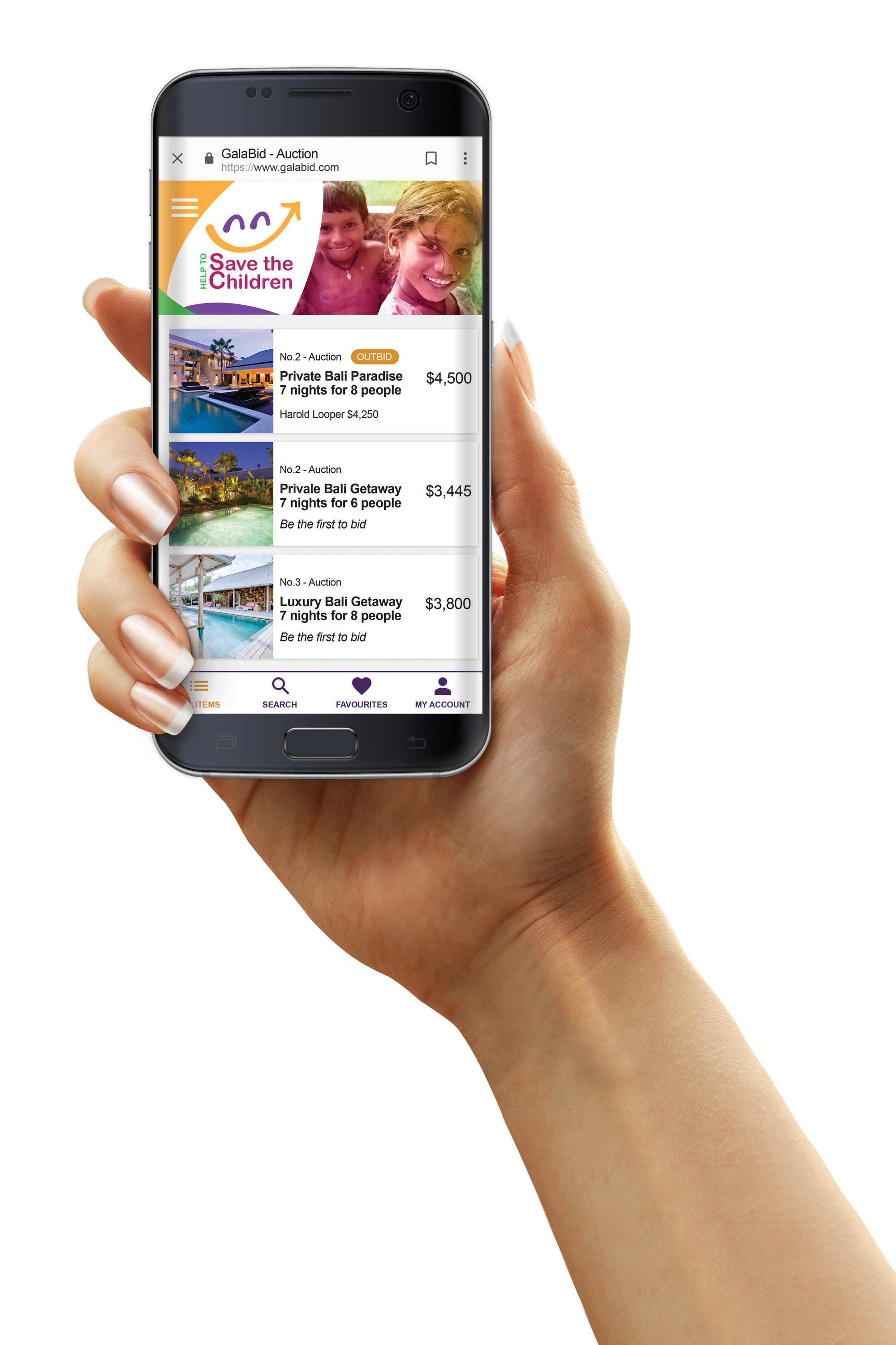 Because participants can see the current highest bid and receive bid activity SMS notifications, e.g. outbid alerts, they are always connected to the auction action. This improves bidding activity by keeping the competition active around the clock.