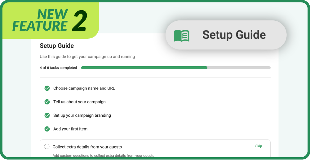 The new Setup Wizard provides guided, step-by-step assistance when creating a fundraiser. It simplifies the setup process, helping organisers move from idea to launch with greater clarity and fewer setup errors.