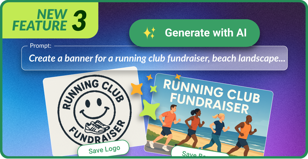 The AI Image Generator allows fundraisers to create campaign visuals using simple text prompts. Images can be tailored to suit different event types, themes, or audiences without needing design software.